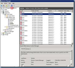 The Microsoft Exchange Information Store service terminated unexpectedly. It has done this 1 time(s). The following corrective action will be taken in 5000 milliseconds: Restart the service.