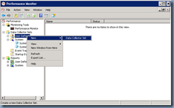 The first step in setting the monitoring up is to open Performance Monitor and create an alert so begin by opening up the application in Administrative Tools then navigate to Data Collector Sets –> User Defined: